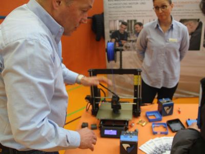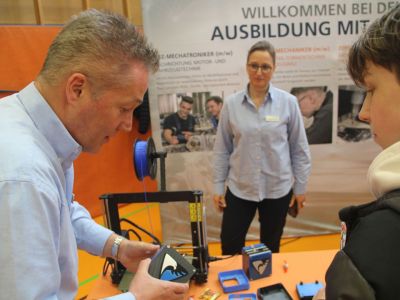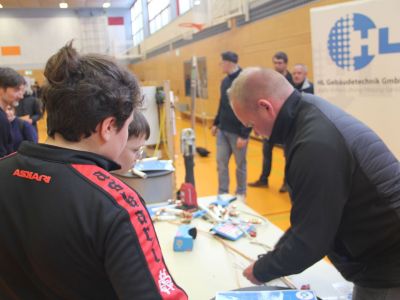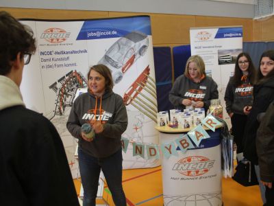 Die Ausbildungsmesse ist zwar eine gute Möglichkeit, sich einen Blick über die Berufswelt zu verschaffen, aber auch durch andere schulische Aktivitäten, wie zum Beispiel durch einen Schulausflug. So auch bei Luca Wadephul (Solidtec), der dadurch seine Leidenschaft zum Werkzeugbau gefunden hat und nun ein Azubi ist. Der ehemalige Aueschüler Eric Roßkopf von der Möbelaufbaufirma Möbel-Transport GmbH (MTG) erzählte: "Die Produktion läuft gut und Nachwuchs ist gefragt."