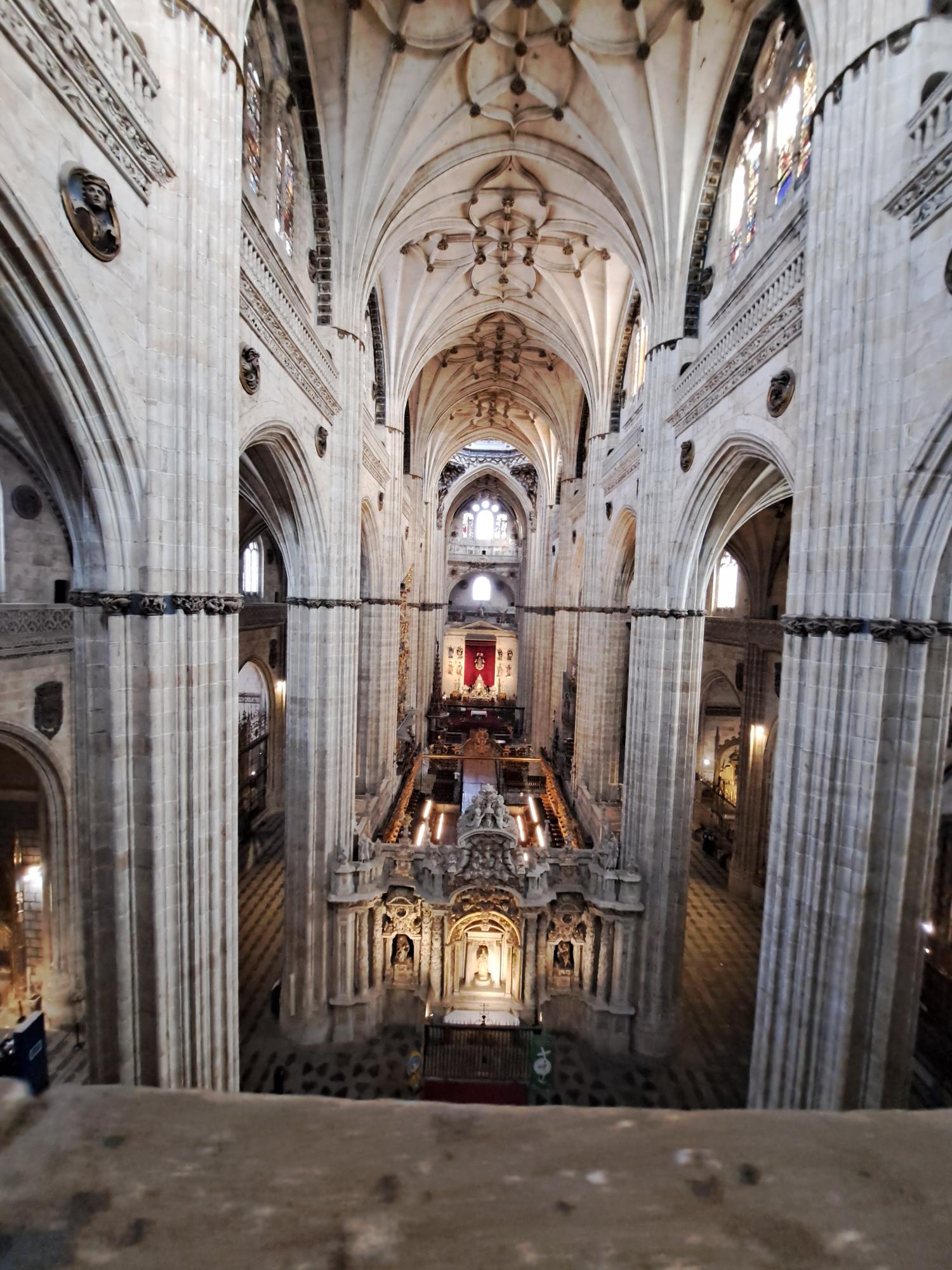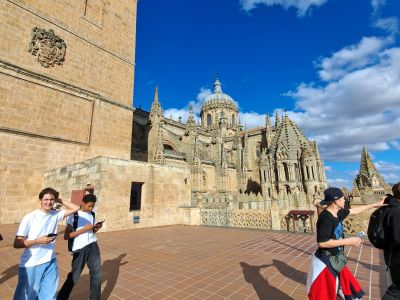 Salamanca liegt im Westen Spaniens, in Kastilien und León, und hat rund 145.000 Einwohner. Die Stadt ist berühmt für eine der ältesten Universitäten Europas und für eine wunderschöne Altstadt mit Gebäuden aus Sandstein. Salamanca hat außerdem zwei wunderschöne Kathedralen, die direkt nebeneinanderstehen. Die Alte Kathedrale (Catedral Vieja) stammt aus dem 12. Jahrhundert. Sie ist kleiner, wirkt aber prachtvoll, und ihr Altarbild besteht aus 53 einzelnen Gemälden – jedes davon ein kleines Kunstwerk. Die Neue Kathedrale (Catedral Nueva) wurde im 16. Jahrhundert gebaut und ist riesig und überwältigend. Ihre hohen Säulen und Gewölbe lassen alles andere klein wirken. Ein Astronaut an der Fassade macht das Ganze noch mal cooler. Von den Dächern aus hat man einen fantastischen Blick über die gesamte Stadt. Die Kathedralen sind auch von innen sehr schön, mit hohen Decken und einem kleinen, aber interessanten Museum.