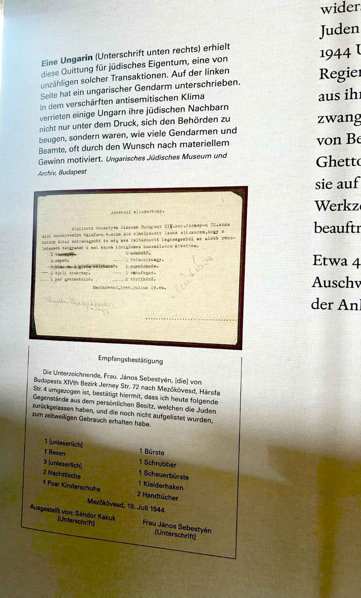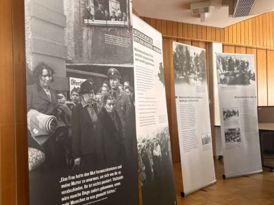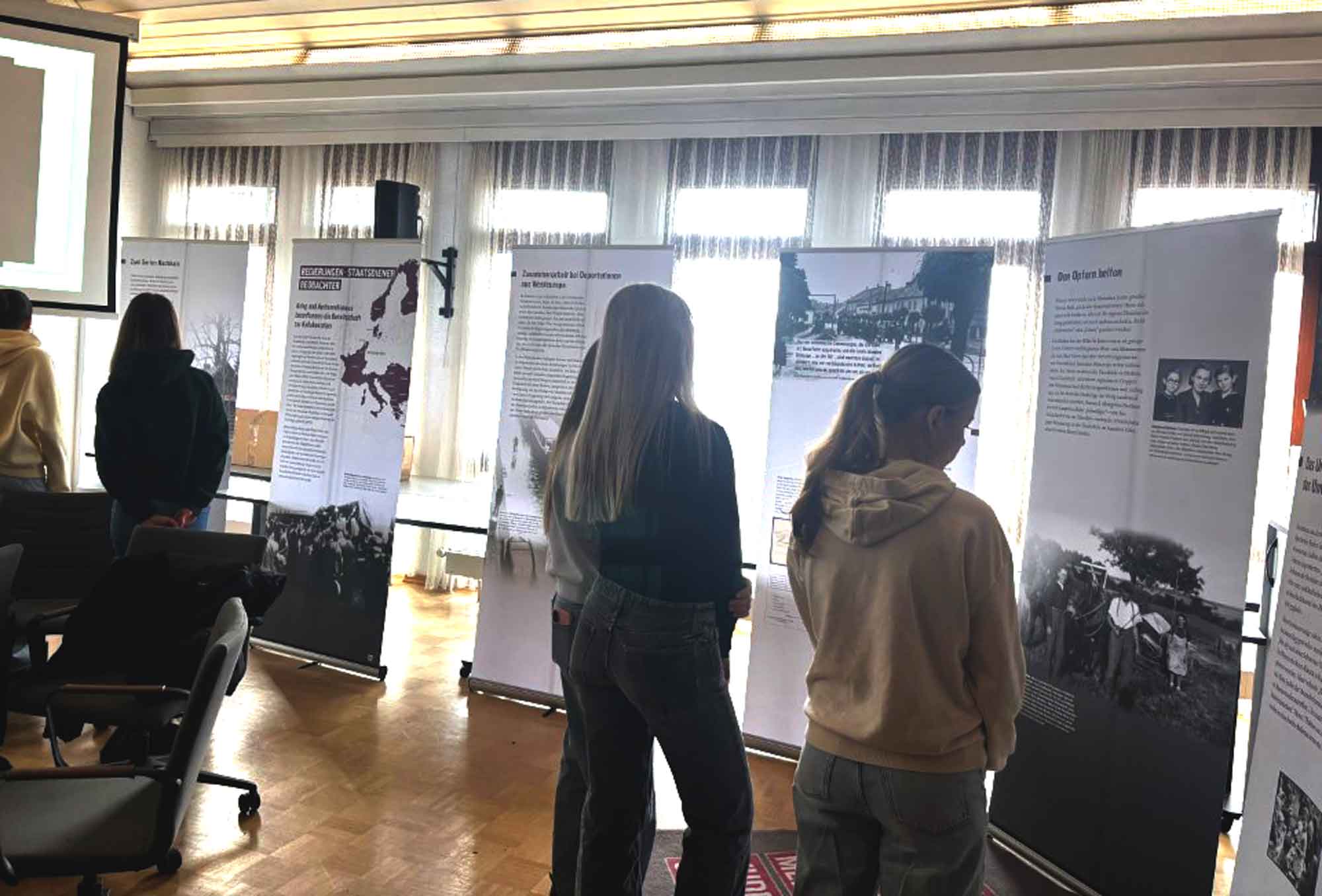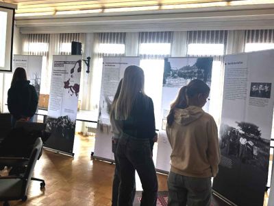 Bei der Ausstellung gab es neben zahlreichen Informationsplakaten zum Thema Mitläufertum, Täterschaft und Widerstand, ganz Europa beleuchtend, auch einen Zeitzeugenbericht dank eines Briefes des damaligen Eppertshäuser-Jugendlichen Joseph Moses. Durch diesen Brief wurde uns erst bewusst, dass diese Verbrechen wie Festnahmen, Deportation und Enteignung nicht "irgendwo" stattfanden, sondern auch hier in Orten, in denen wir heute wohnen, arbeiten und zur Schule gehen.