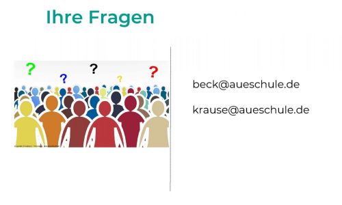 Für Rückfragen stehen Ihnen Herr Beck (Förderstufenleiter) und Frau Krause (Gymnasialzweigleiterin) zur Verfügung (E-Mail-Adresse in der Präsentation).