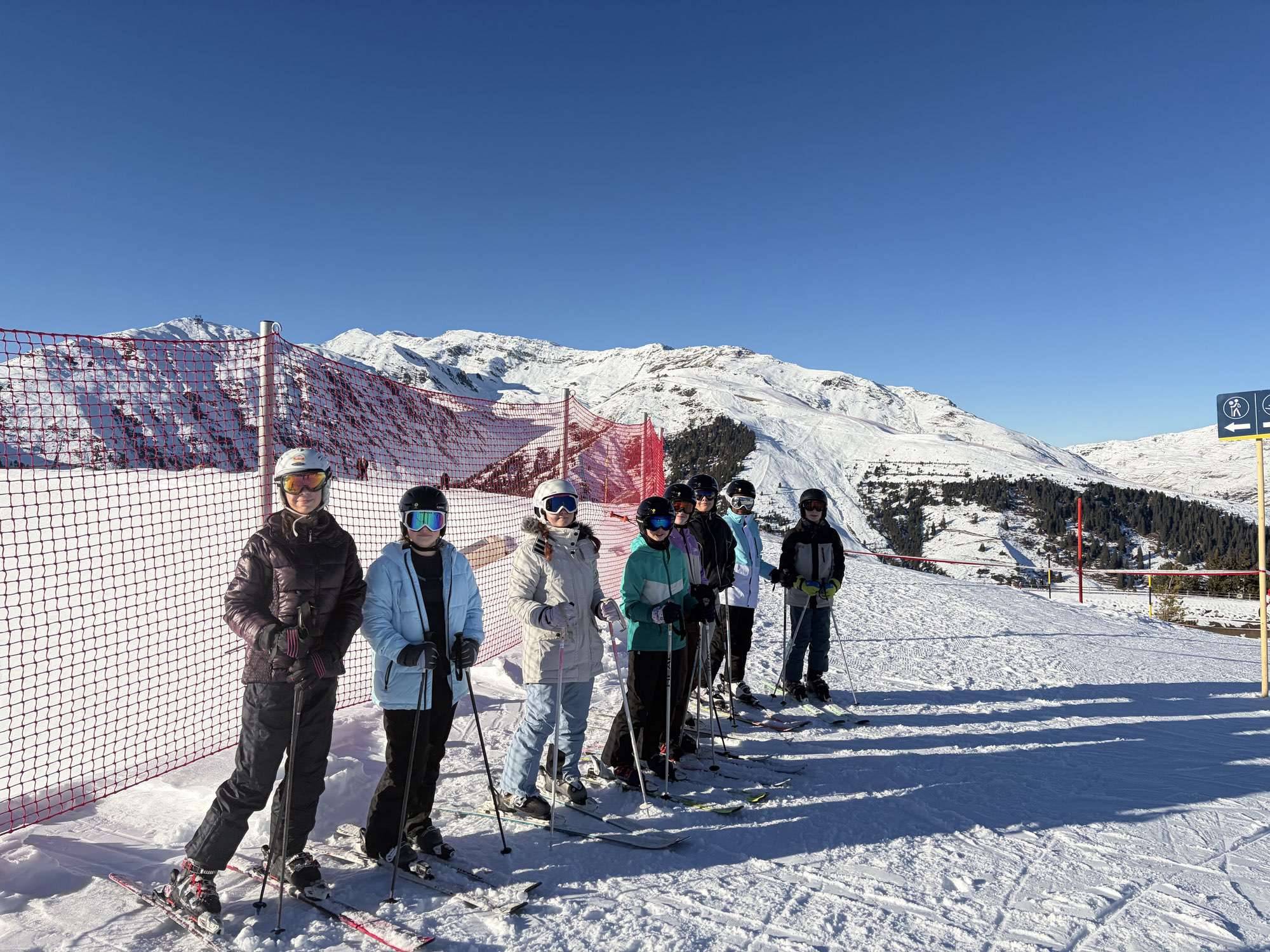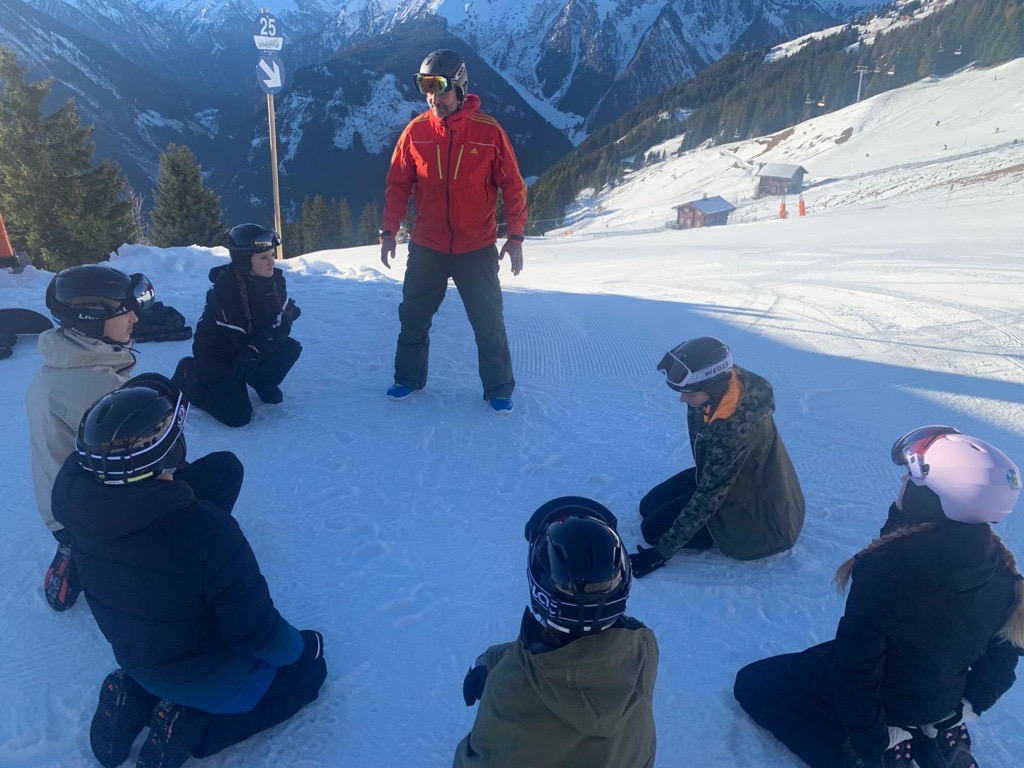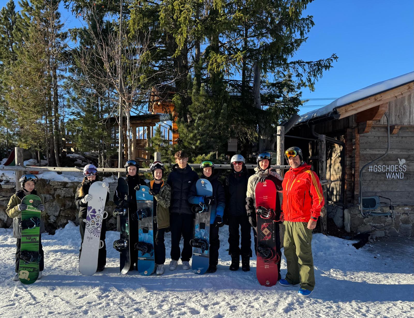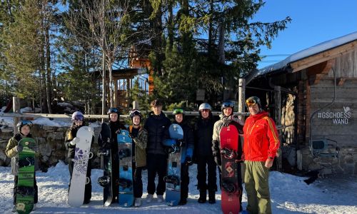 Untergebracht ist die Gruppe im Gschösswand-Haus, das direkt auf der Skipiste liegt. So starten die Tage ohne Umwege in den Schnee. Täglich finden vormittags und nachmittags Ski- und Snowboardunterricht statt. Bei strahlend blauem Himmel und besten Pistenbedingungen sind Motivation und Freude auf der Piste besonders groß – die Lernfortschritte sind deutlich sichtbar.