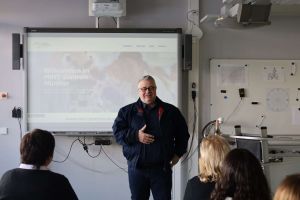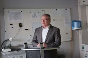 Frau Behlings Stellvertreter Matthias Beyer nahm die Anwesenden mit auf eine Zeitreise in die Geschichte der Naturwissenschaften an der Aue. Von Anfang an sei es das vorrangige Ziel gewesen, den Schülerinnen und Schülern das selbstständige Forschen zu ermöglichen. Seit 2006 nimmt die Münsterer Schule am Wettbewerb „Explore Science“ teil und konnte dort schon viele Sonderpreise ergattern, zuletzt 2024 für ein selbst entworfenes Kaleidoskop. 2010 erreichten findige Aueschülerinnen und -schüler gar den 2. Platz bei „Jugend forscht“ und erhielten einen Sonderpreis für eine verrottbare Tüte. 2011 weihte man das NaWi-Gebäude ein, 2018/19 erfolgte die Umsetzung eines naturwissenschaftlichen Schwerpunkts an der Aueschule, die NaWi-AG benannte man in den „Science Club“ um. Mit der Einweihung des MINT-Zentrums hat die Aueschule nun den vorläufigen Höhepunkt ihrer NaWi-Geschichte erreicht.