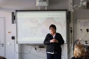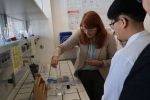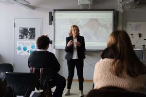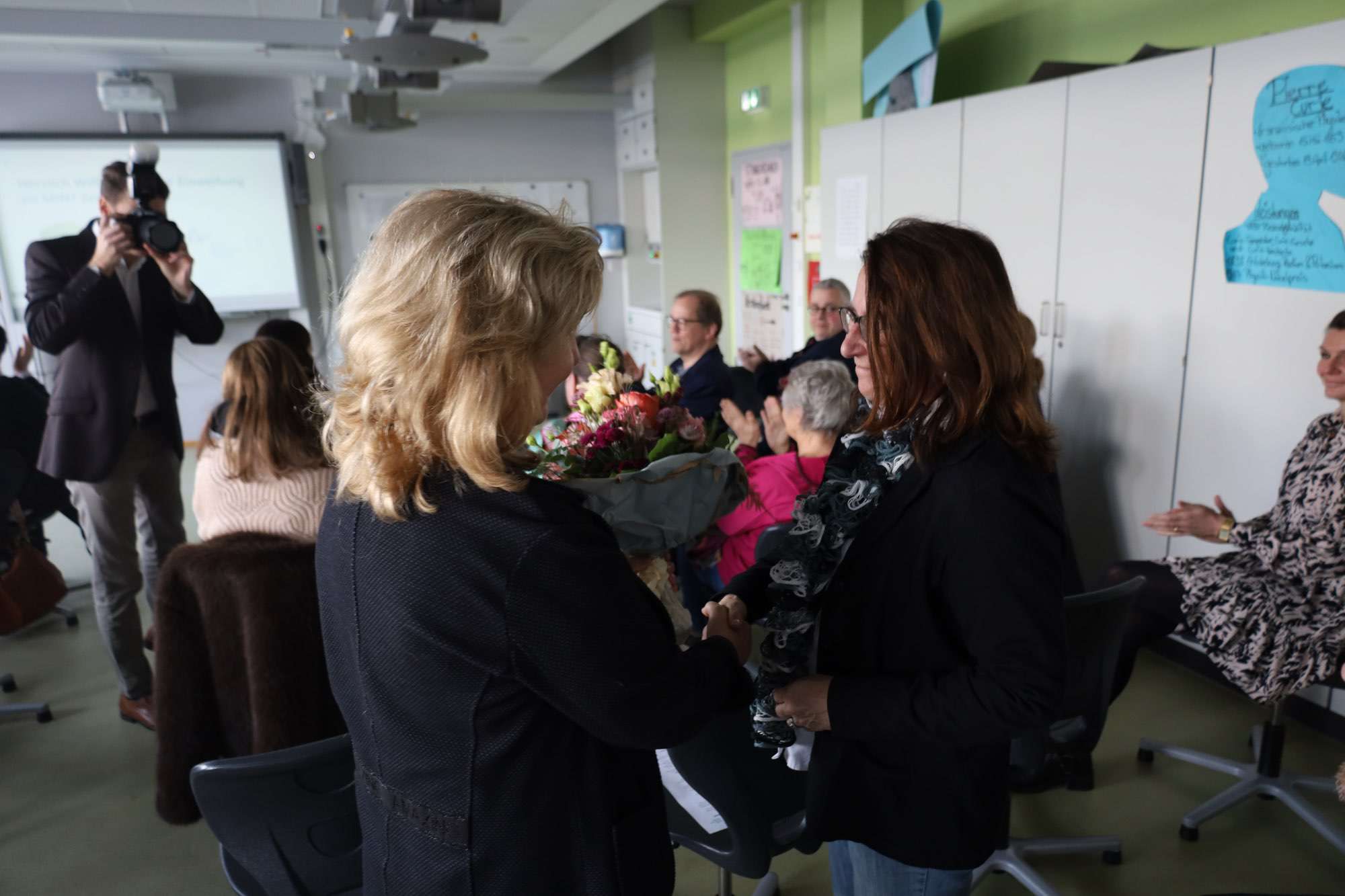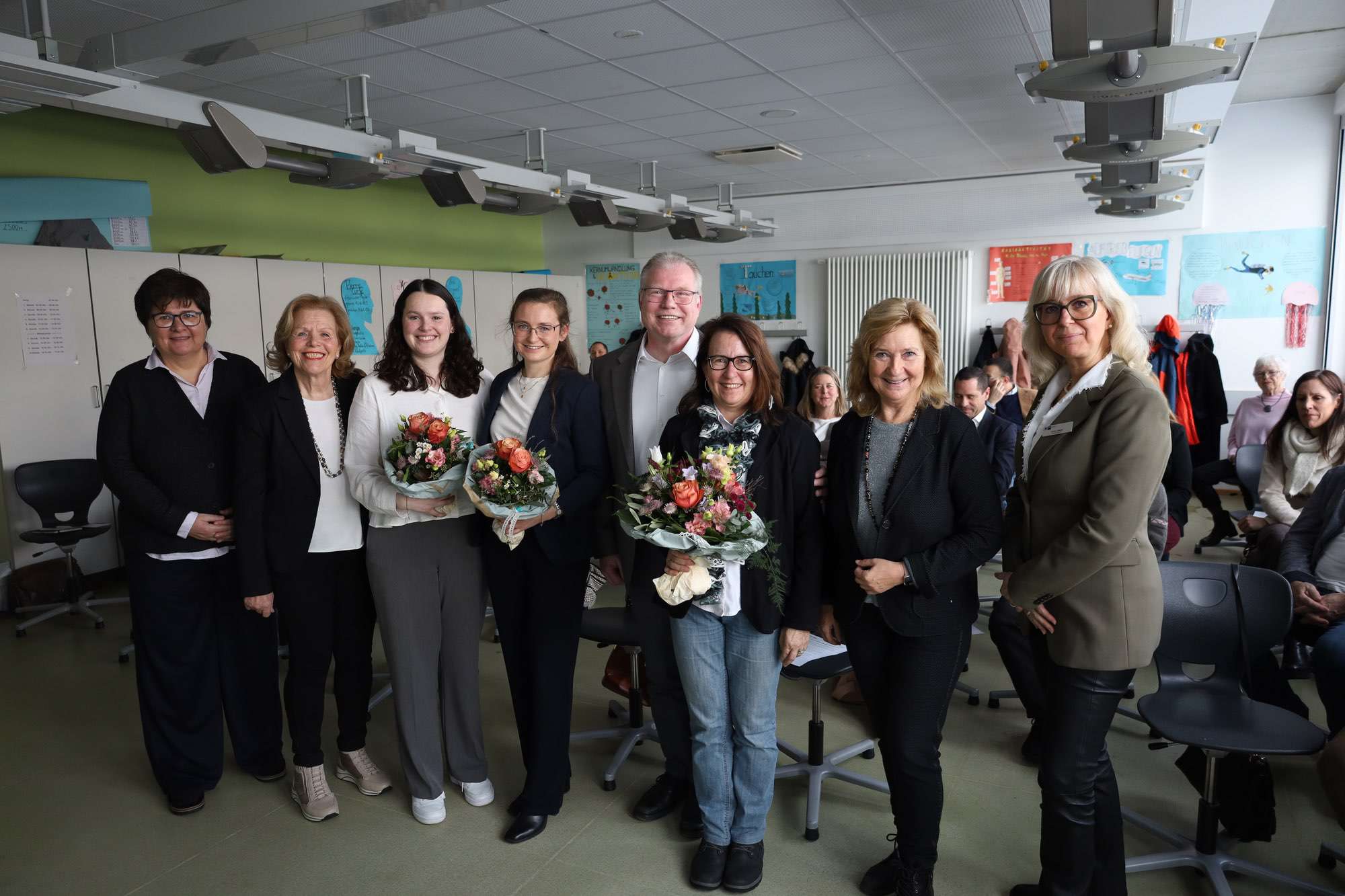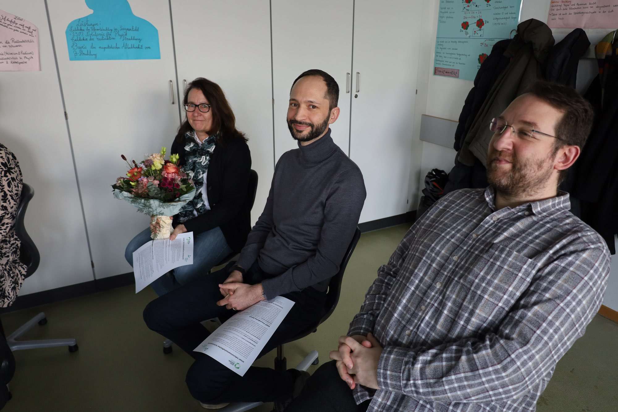 Bereits 2001 gibt es an der kooperativen Gesamtschule einen naturwissenschaftlichen Schwerpunkt – er war damals das „Herzstück der Aueschule“, erinnerte sich Direktorin Sabine Behling in ihrer Rede zurück. Ihre Kollegin Heike Gondolf steuert nun schon seit 20 Jahren maßgeblich dieses „Herzstück“ und wurde hierfür mit einem Blumenstrauß gesondert geehrt. Die erfahrene Biologie- und Chemielehrerin leitete über viele Jahre die NaWi-AGs an der Aueschule. Mit den Workshops erweitert die Aueschule nun ihr schulinternes Angebot auf den ganzen Landkreis.