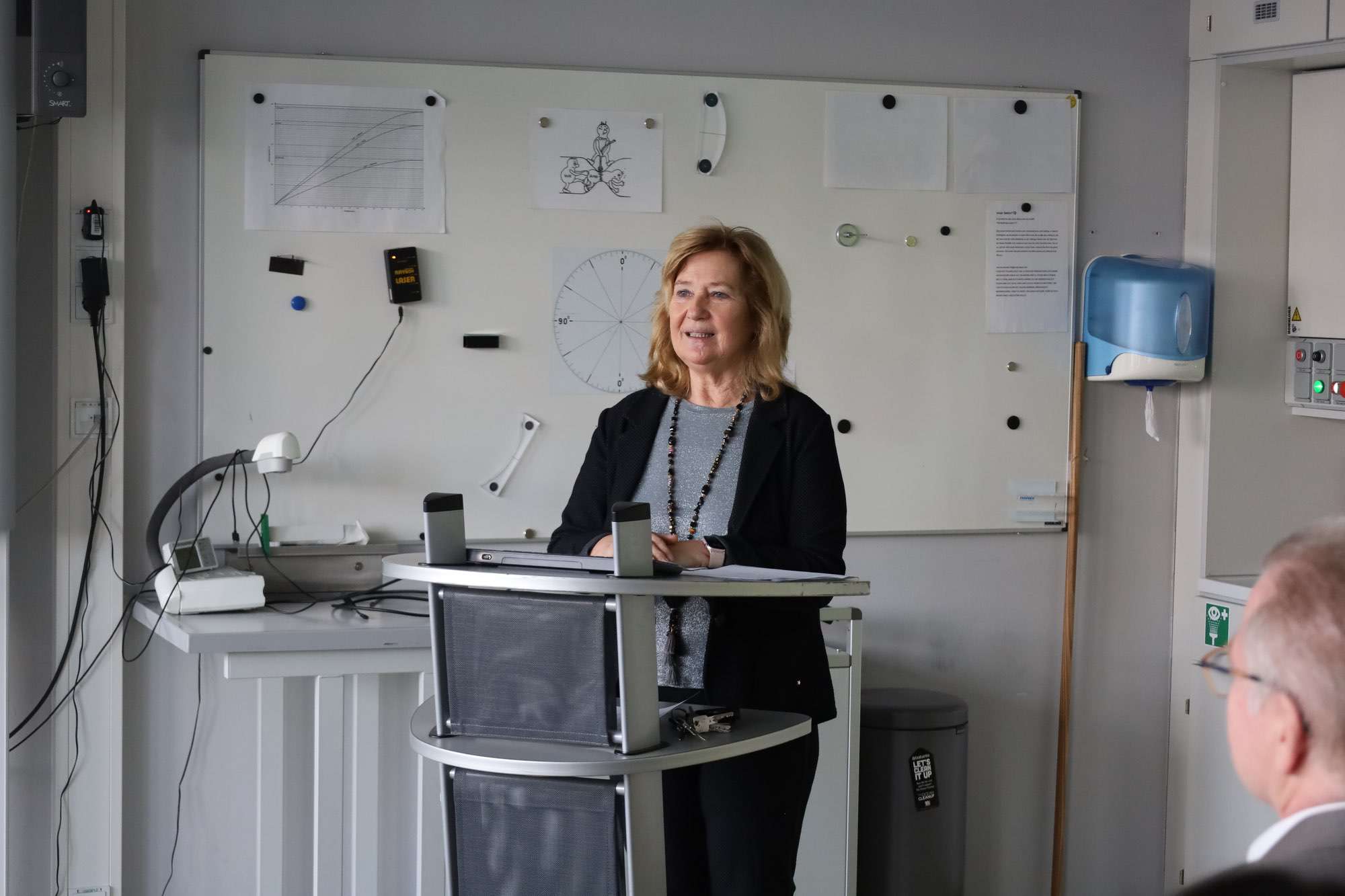 Nicole Roth-Sonnen, einst Direktorin des Max-Planck-Gymnasiums in Groß-Umstadt und aktuell stellvertretende Leiterin des Schulamts in Darmstadt, ist selbst begeisterte NaWi-Lehrerin und freute sich über die vielen Frauen im MINT-Zentrum Münster: „Einst war Physik eine Männerdomäne, das ist sie heute nicht mehr“. Münsters Bürgermeister Joachim Schledt, selbst zwischen 1974 und 78 Aueschüler, erinnerte sich an seine Pennälerzeit zurück, als er in der Schule leider nicht experimentieren konnte, sondern sich hierfür privat stets in einer Drogerie in Dieburg die Materialien besorgen musste. „Dieses MINT-Zentrum ist einfach super, da kann man nur stolz sein“, lobte er das neue Juwel der Gersprenzstadt.