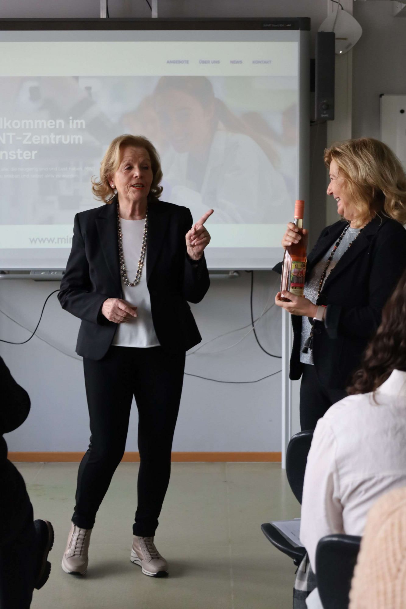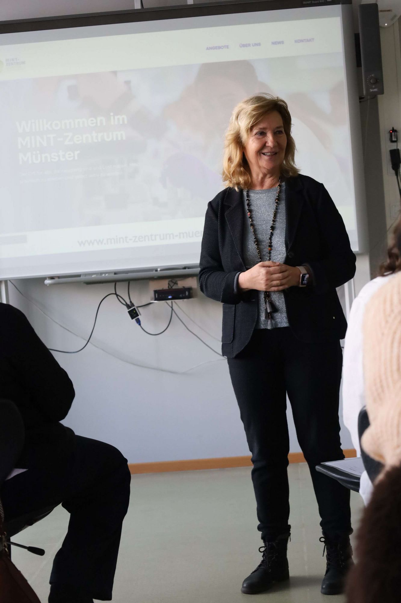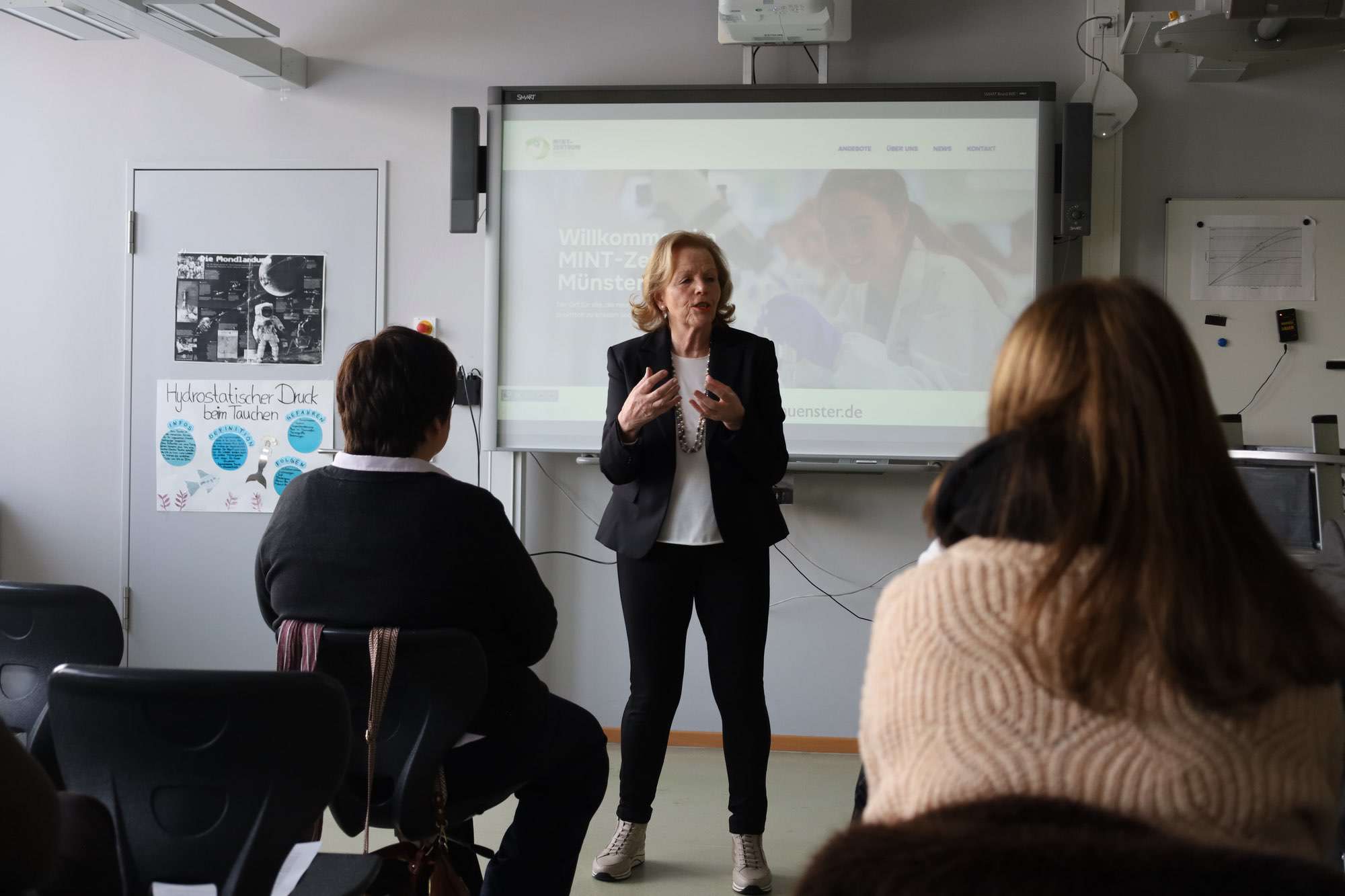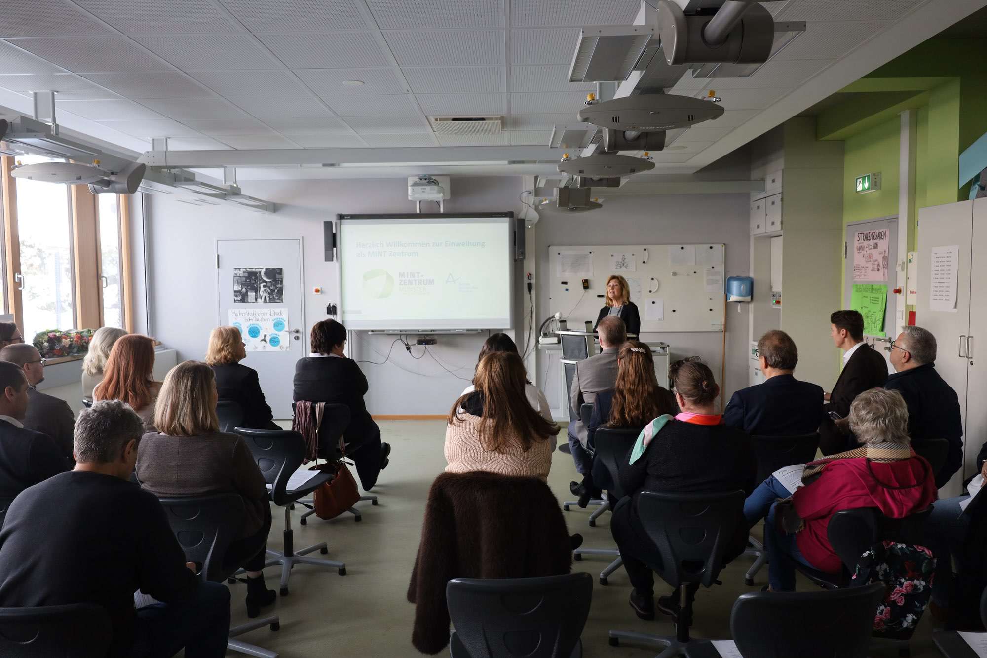 Als Rednerin freute sich Schuldezernentin und Kreisbeigeordnete Frau Dr. Margarethe Sauer über das neue MINT-Zentrum: „Für MINT braucht man Mut, Innovation, Nähe und Netzwerke sowie Teamwork. War früher MINT etwas für Hochbegabte, so ist dieser Bereich heute ein wichtiger schulischer Beitrag zur Berufsorientierung“. Ulrike Jacobi, Unternehmerin und Vize-Präsidentin der IHK, hob die besondere Atmosphäre an der Aueschule hervor: „Hier wird mit so viel Herzblut gearbeitet, wir sind sehr froh über dieses neue Zentrum“. Die IHK ist einer der Akteure in der Arbeitsgruppe „MINT-Zentren“, die einst das Ziel ausgab, in jedem Landkreis ein solches zu eröffnen. Münster ist nun neben Ober-Ramstadt und Seeheim-Jugenheim das dritte MINT-Zentrum im Landkreis Darmstadt-Dieburg.