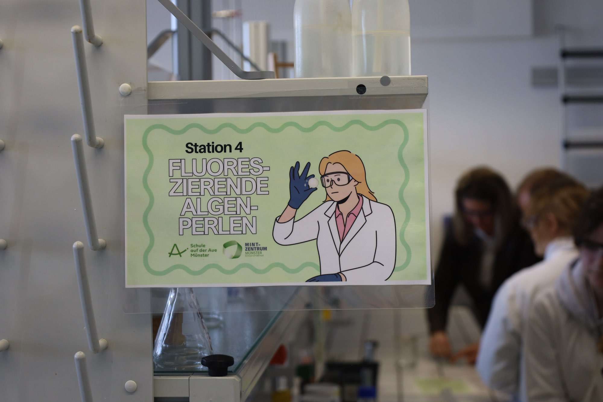 Unsere NaWi-Lehrerinnen Ann Sophie Carl und Cindy Heyn setzten sich wie schon bei der Vorarbeit für das Siegel „MINT-freundliche Schule“ sehr engagiert dafür ein, dass der MINT-Standort Münster über die Gemeindegrenzen hinaus einen Namen erhält. „An Musik begeisterte Schülerinnen und Schüler finden an der Aue ein Zuhause, ebenso Sportlerinnen und Sportler können sich hier ausleben, nur für die an NaWi-Interessierten hatten wir bislang kein umfassendes Nachmittagsangebot. Das hat sich nun geändert“, erklärte eine sichtlich stolze Frau Heyn.