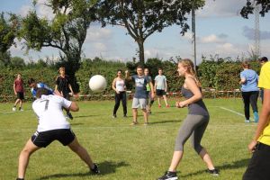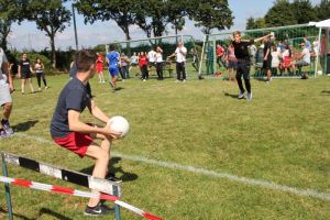 In der letzten Schulwoche vor den Sommerferien finden alljährlich die Bundesjugendspiele statt. An zwei Tagen messen sich die Schülerinnen und Schüler mit ihren Mitschülern in den klassischen Disziplinen des Vierkampfs: Sprung, Sprint, Wurf und Langstreckenlauf, wobei der Langstreckenlauf, wie jedes Jahr, separat im Sportunterricht vor- bzw. nachgeholt wird. Einen Höhepunkt stellt aber auch der Klassenwettbewerb dar: Hier treten die Klassen im Völkerball, bei einem Staffellauf, im Langstreckenlauf und bei einer Schwammschlacht gegeneinander an. Auf die Gewinnerklasse warten ein Eis-Gutschein sowie ein großer Pokal. Die Bundesjugenspiele sind an unserer Schule daher nicht einfach nur Bundesjugendspiele - sondern ein ganz besonderes Sportfest über zwei Tage.
