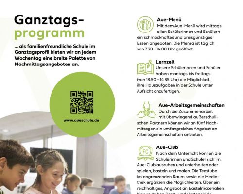 Die Schule auf der Aue ist eine familienfreundliche Schule mit Mensa, Mediathek und Nachmittagsbetreuung. Unsere weiterführende Schule können alle Kinder und Jugendliche aus Münster, Altheim und Eppertshausen von der 5. bis zur 10. Klasse besuchen. Um den Übergang an unsere Schule so leicht wie möglich zu machen, arbeiten wir eng mit den Grundschulen im Umkreis zusammen. Unsere Abgänger wechseln gut vorbereitet in die beruflichen oder studienbezogenen Oberstufen unseres Schulverbundes mit Dieburg oder in eine berufliche Ausbildung. In der folgenden Bildergalerie "Das sind wir" finden sich alle wichtigen Informationen zu unserem Schulprofil. Diese Übersicht gibt es als Flyer auch in einer gedruckten Version.