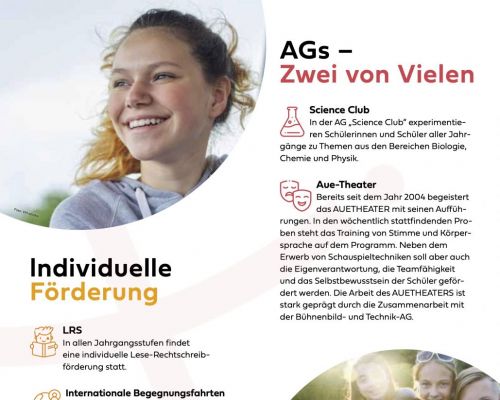 Der Vorteil einer „Kooperativen Gesamtschule“ ist, dass ein Wechsel zwischen den einzelnen Schulzweigen der Aueschule möglich ist, ohne die Schule verlassen zu müssen.